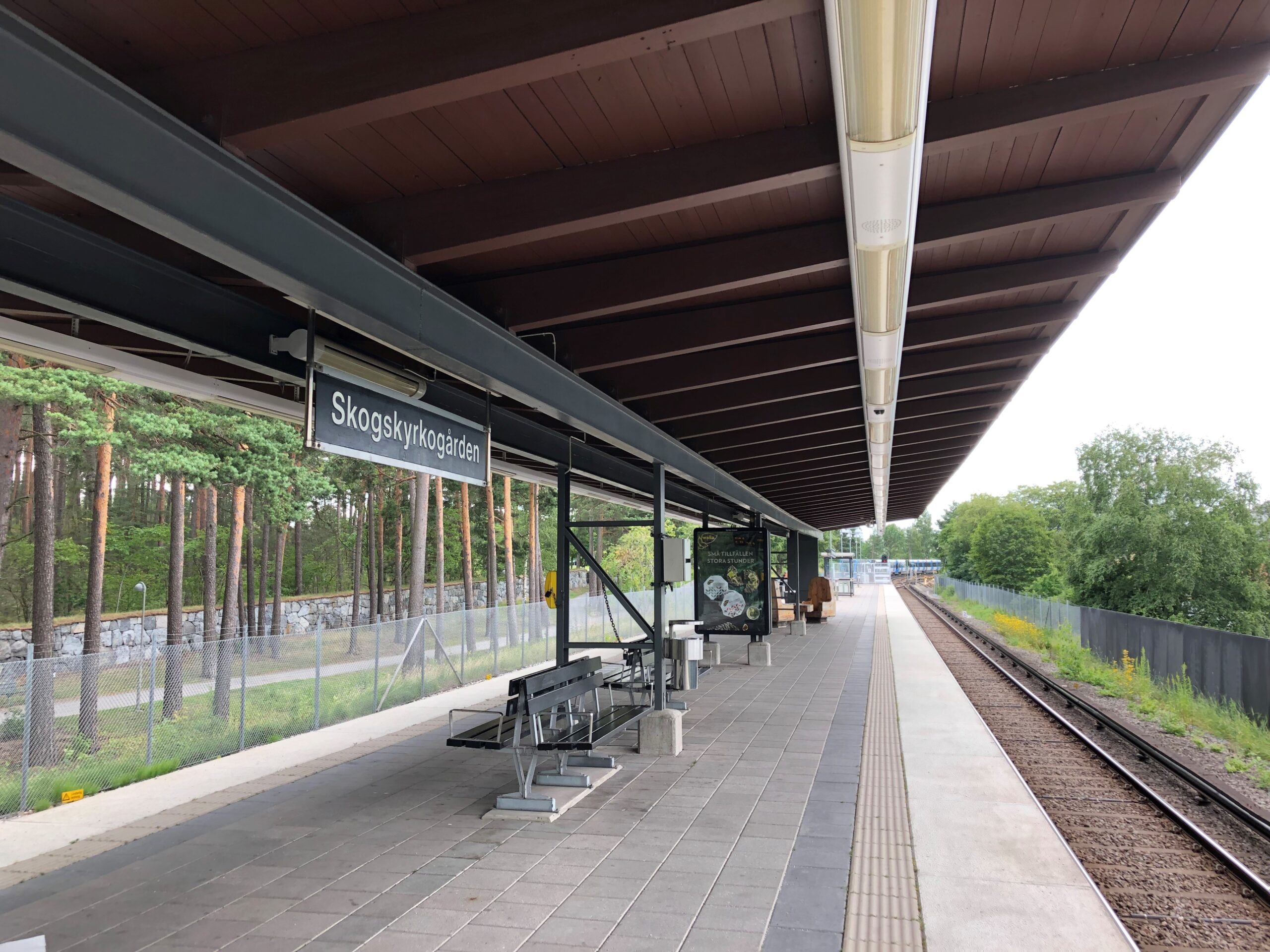 ストックホルムからメトロで20分程度移動、Skogskyrkogarden駅で降りる。