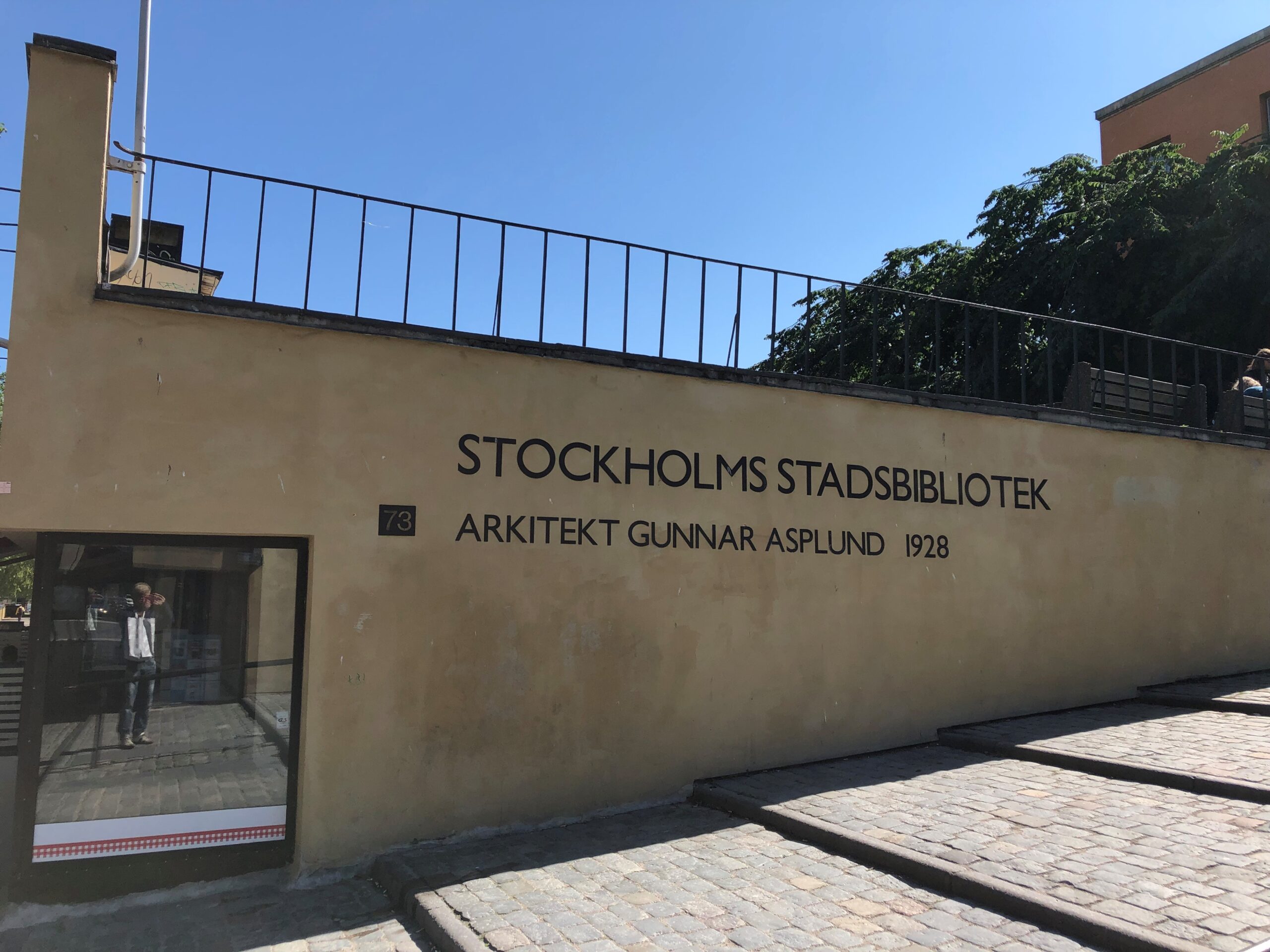 ストックホルム市内を歩くと公園に隣接してある。設立1928年、建築家の名前も記されている。