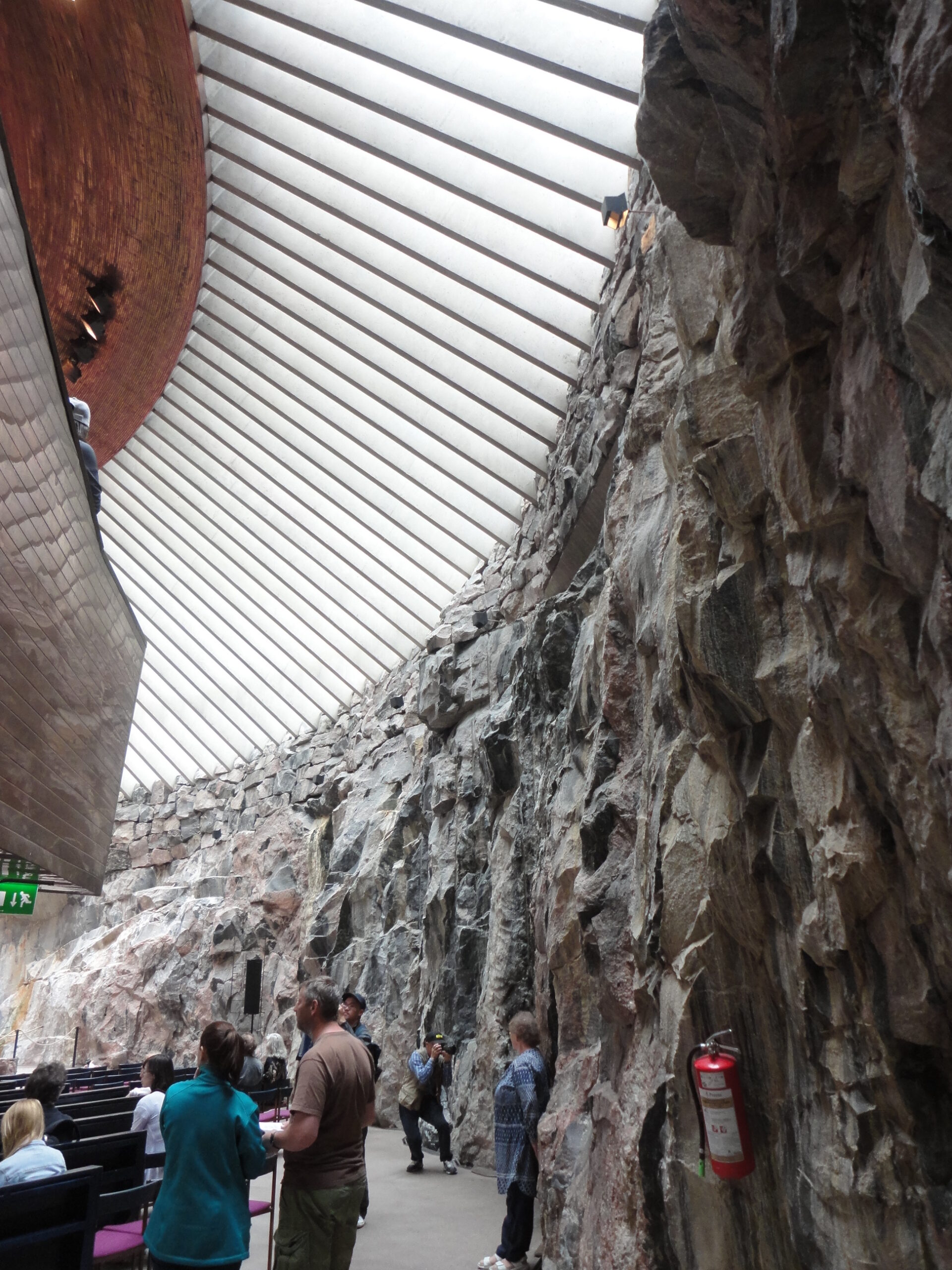 建築は1969年に完成。建築家スオマライネン兄弟のデザイン設計、コンペで当選した際にこの地面を掘り下げるプランがコスト的にも評価されたらしい。しかし自然の造型を利用したこのダイナミックな建築には、この場所ならではの感動がある。