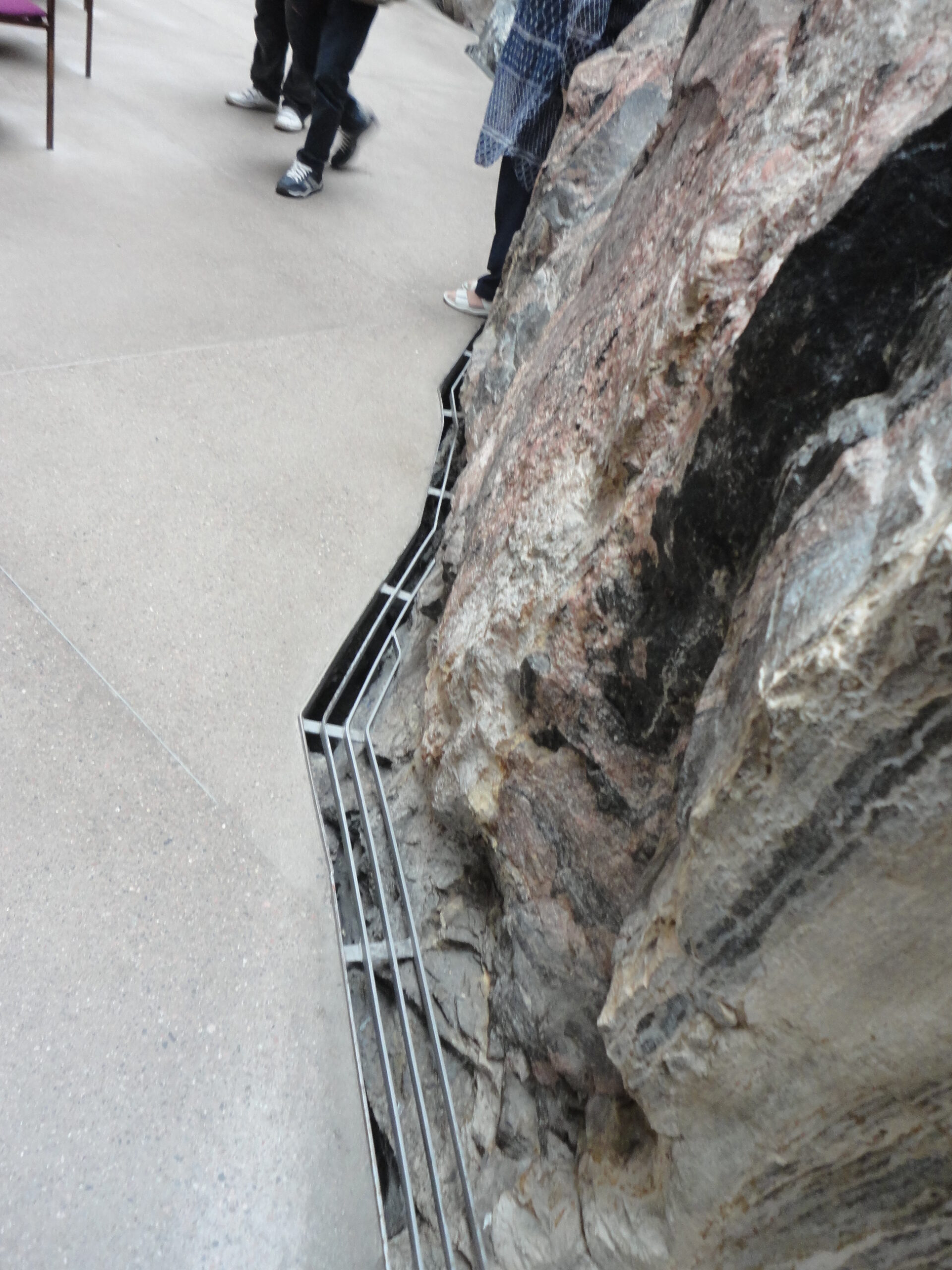 工事中は岩盤から水が湧きだしたらしく、床との間に排水溝スリットがある。