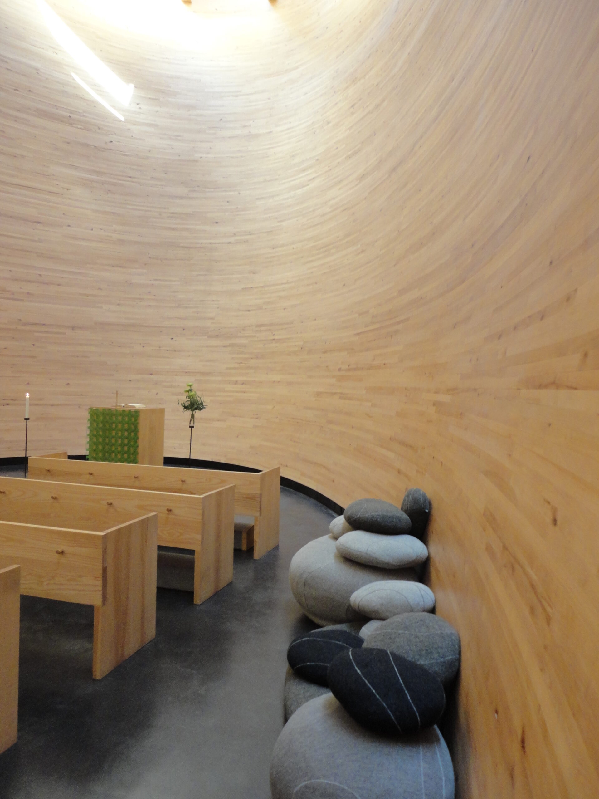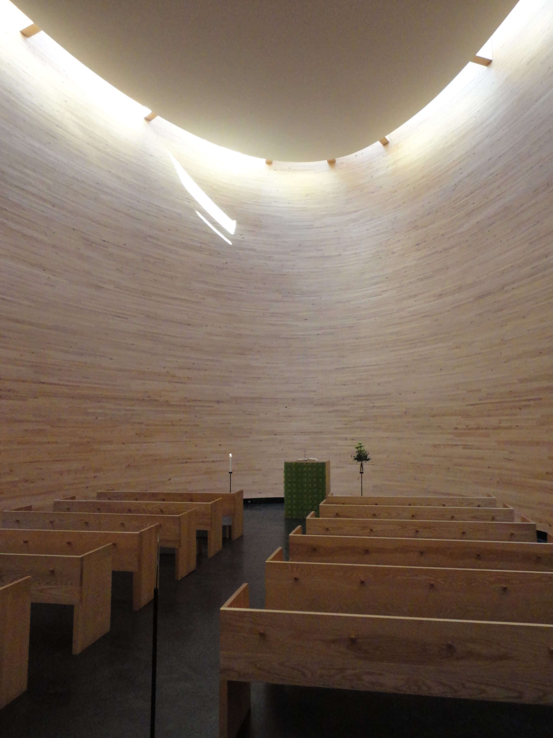 同じルター派の教会でも、こちらは北欧ならではの木を有効に使った建築。